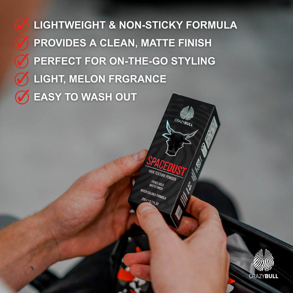 Flat hair? Not anymore. Crazy Bull’s Space Dust Texture Powder is the secret weapon for short to medium styles that need lift, volume, and all-day structure.