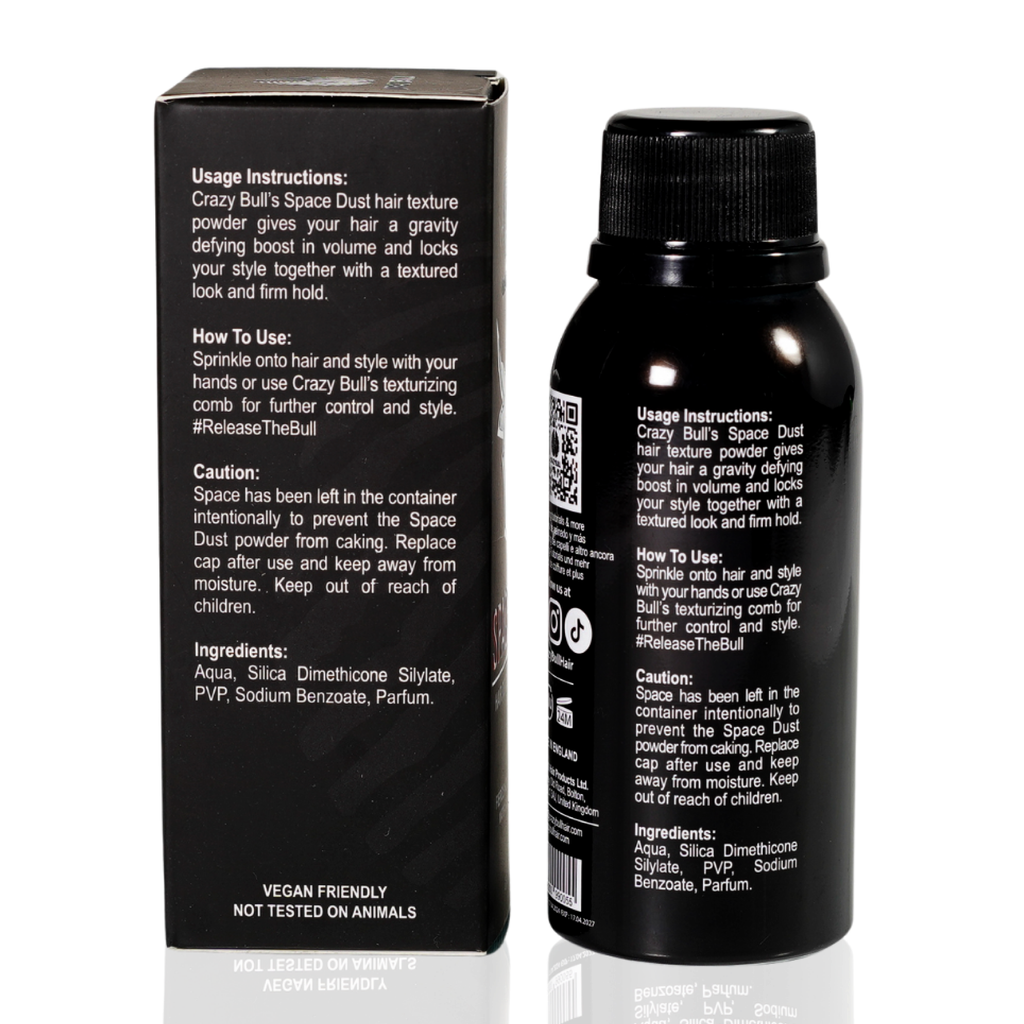 Sprinkle onto hair and style with your hands or use Crazy Bull's texturising comb for further control and style.