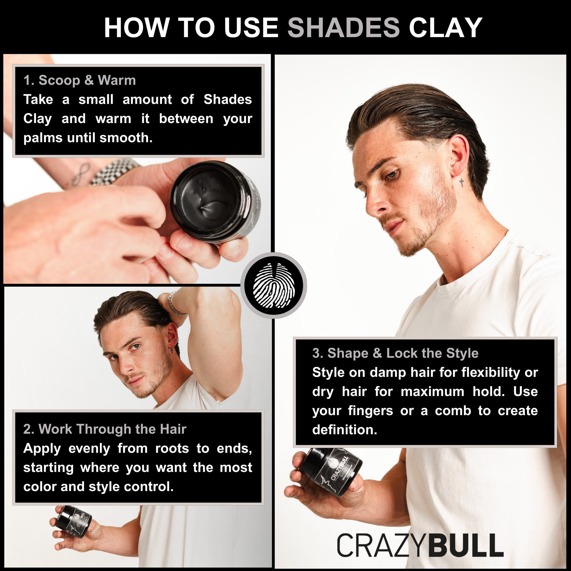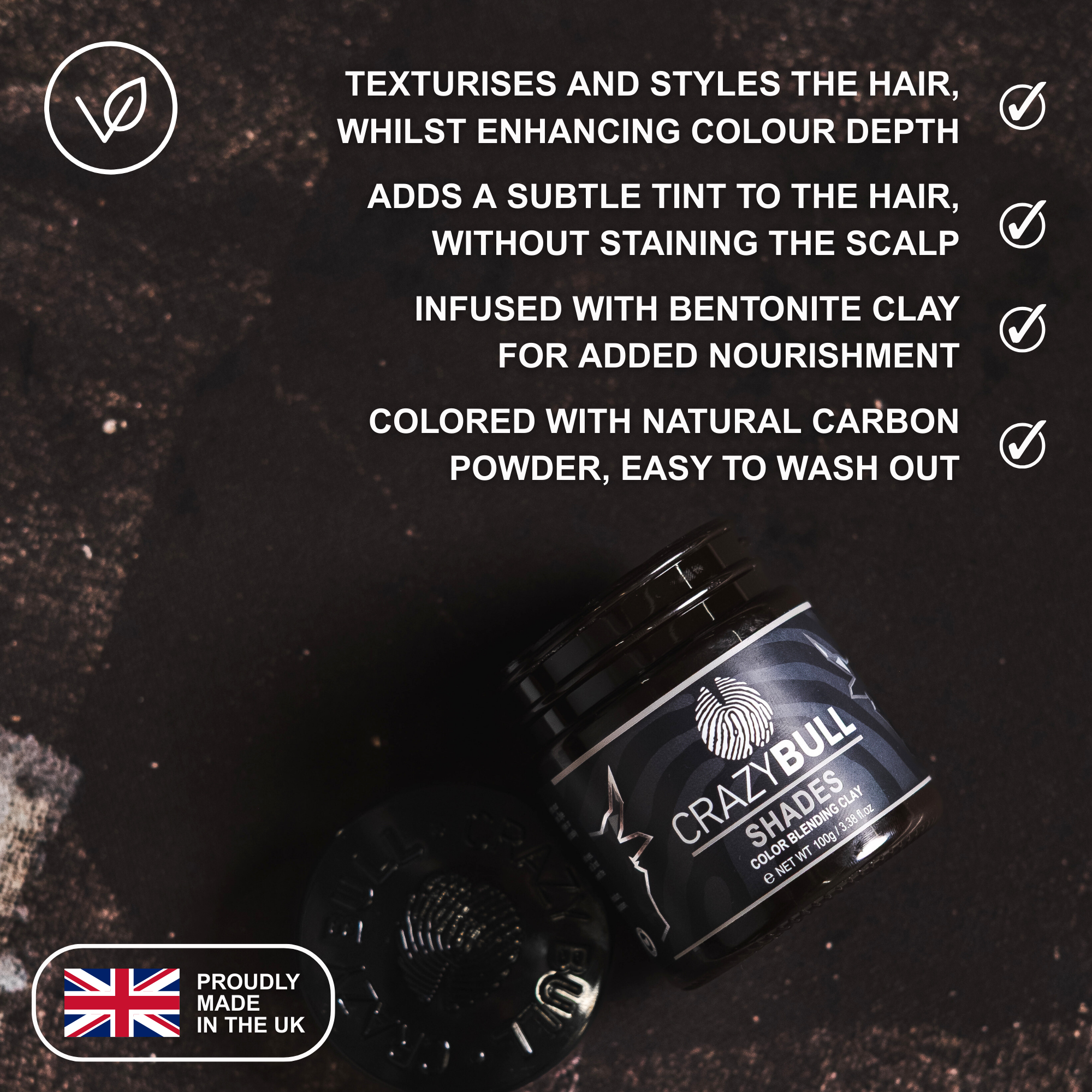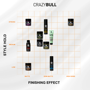 It is water-based with light salts and a low-residue hold polymer, so it does not cling to the hair or scalp. A normal shampoo (Try one of our Crazy Bull Shampoos) removes it fully, and for most people it rinses clean without needing a double wash.